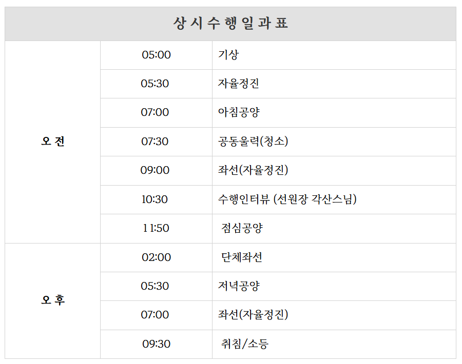 ※ 단기수행자는 선원장 스님의 일정에 따라 수행인터뷰를 못할 수도 있습니다.