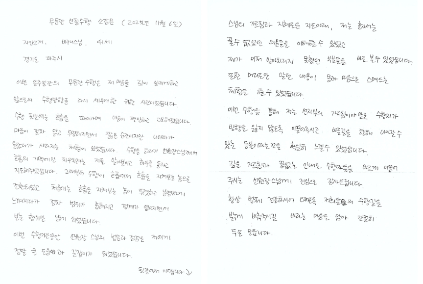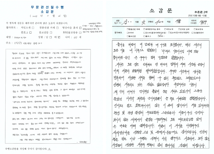 [필독] ☞ 15일 후에는 환불이 되지 않습니다. 또한 향후 2년간 신청이 불가능한 점을 유의해주시기 바랍니다. 이는 다른 참가자의 귀중한 수행 기회를 놓치게 만들었기 때문입니다.